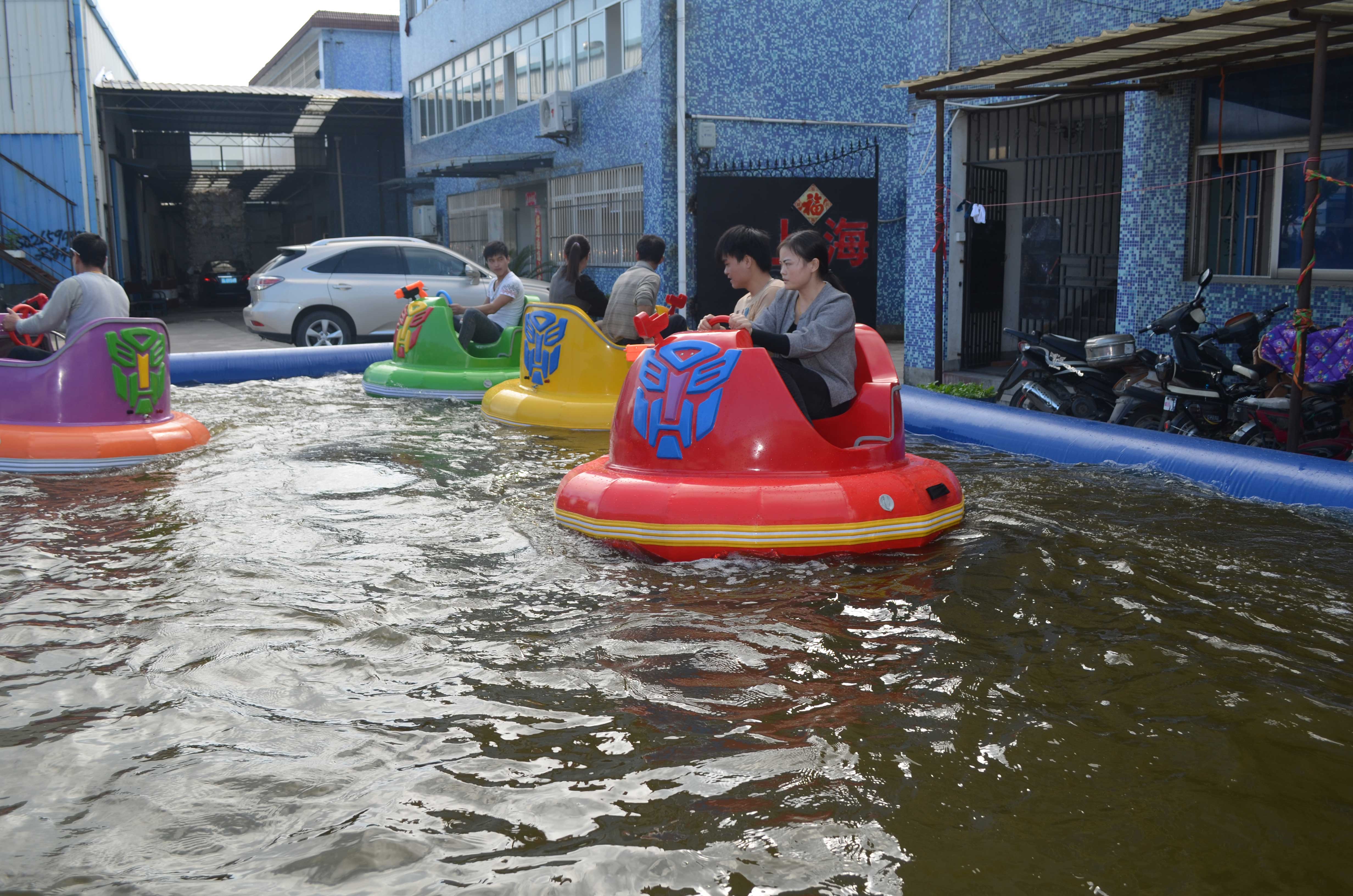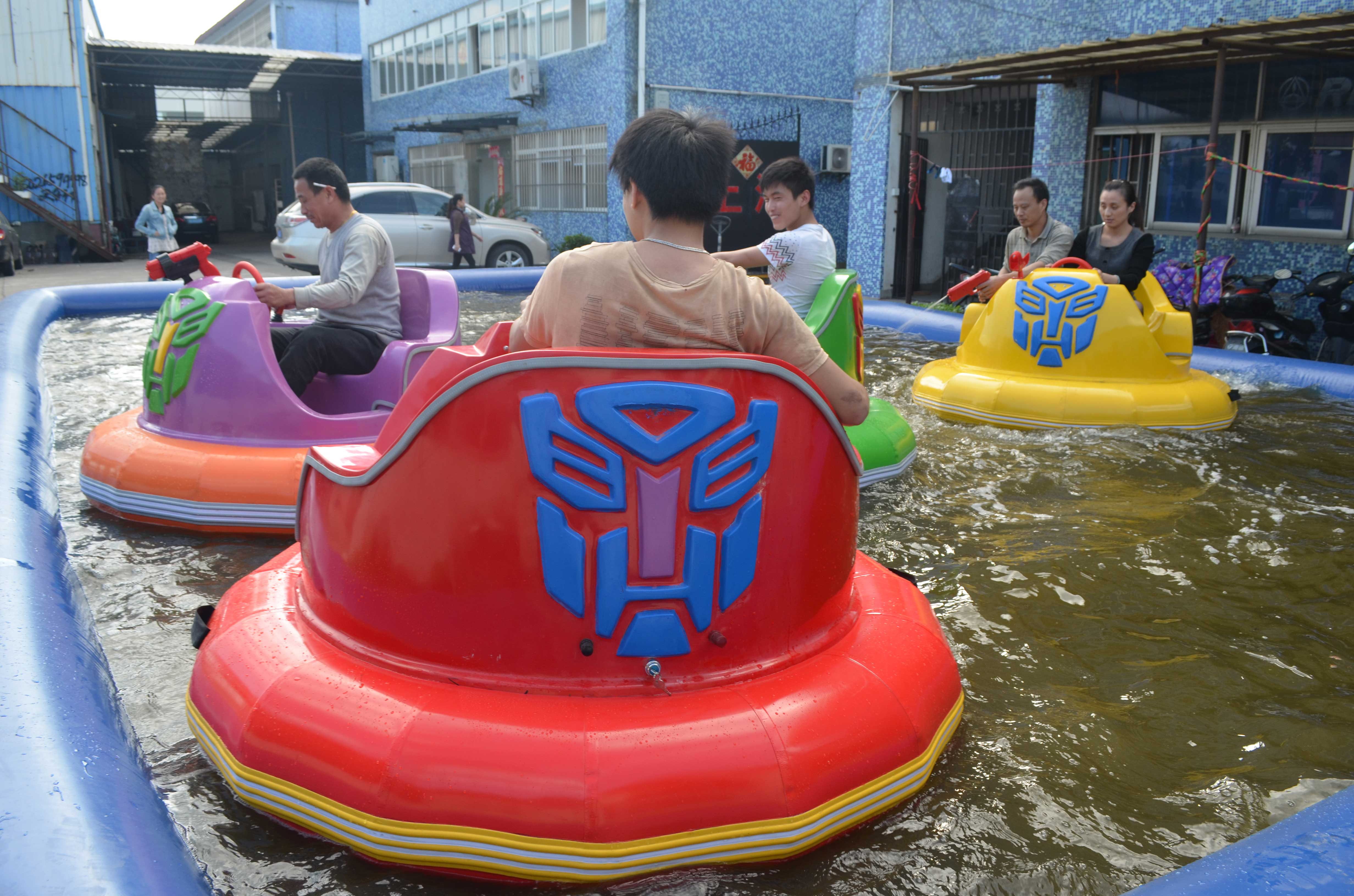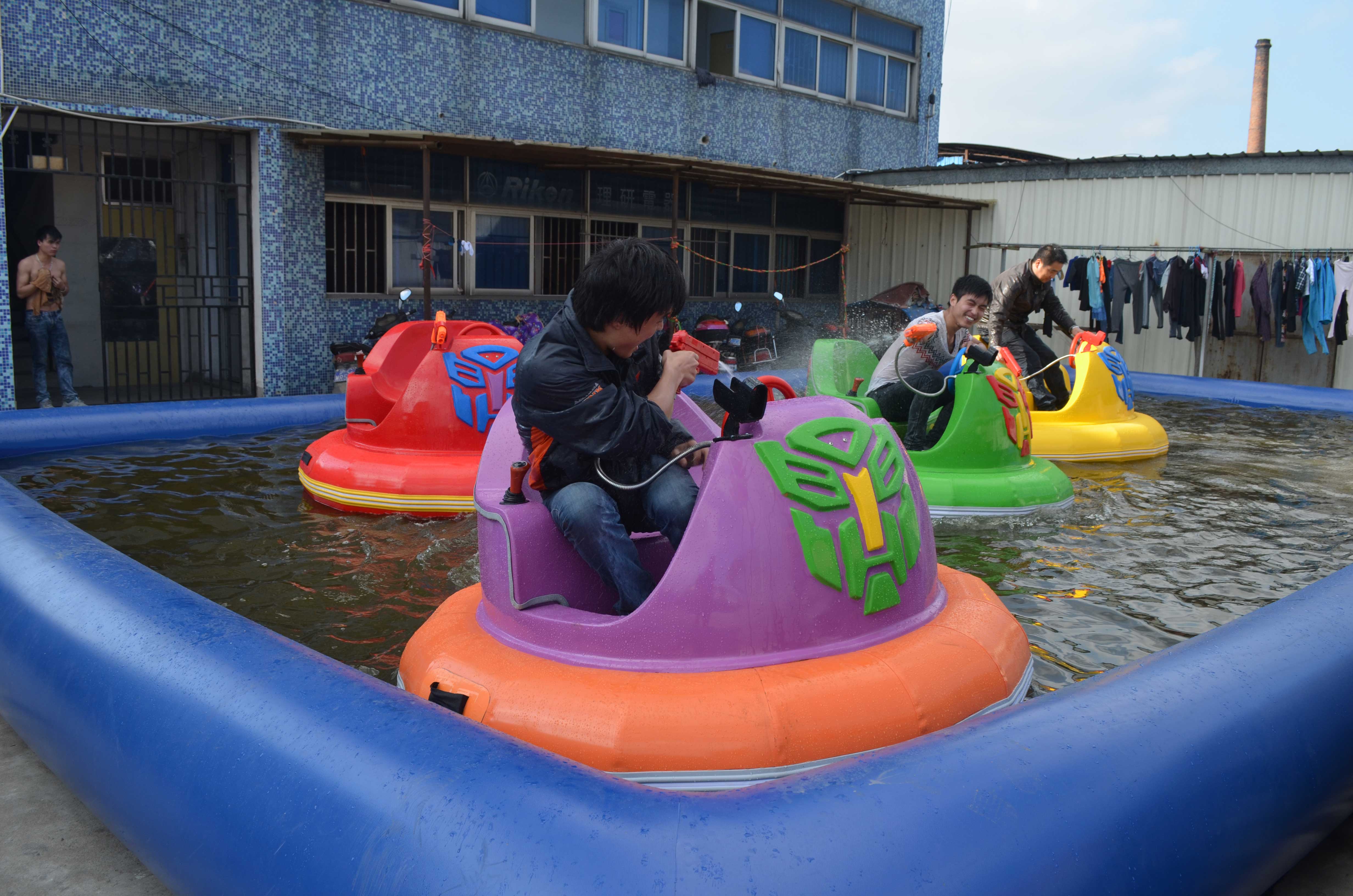 產品介紹: 金剛碰碰船是繼普通碰碰船后研發制造,其造型美觀,性能卓越,參與感強,PVC外胎使得碰撞更加刺激,行進中伴有高保真音響系統及多邊的燈光,還有自創的一體式激光槍水槍,采用進口12V壓力強水泵,可以噴出12-15米水柱,天熱時激光槍水槍可以同時使用 ,天冷時可以吧水槍關閉,只使用激光槍擊打水雷,當擊中水雷時,水雷會發出爆炸的聲音,同時發出語音“你真棒,再來一槍”,水槍的自由對戰更加吸引小朋友,趣味性極強。